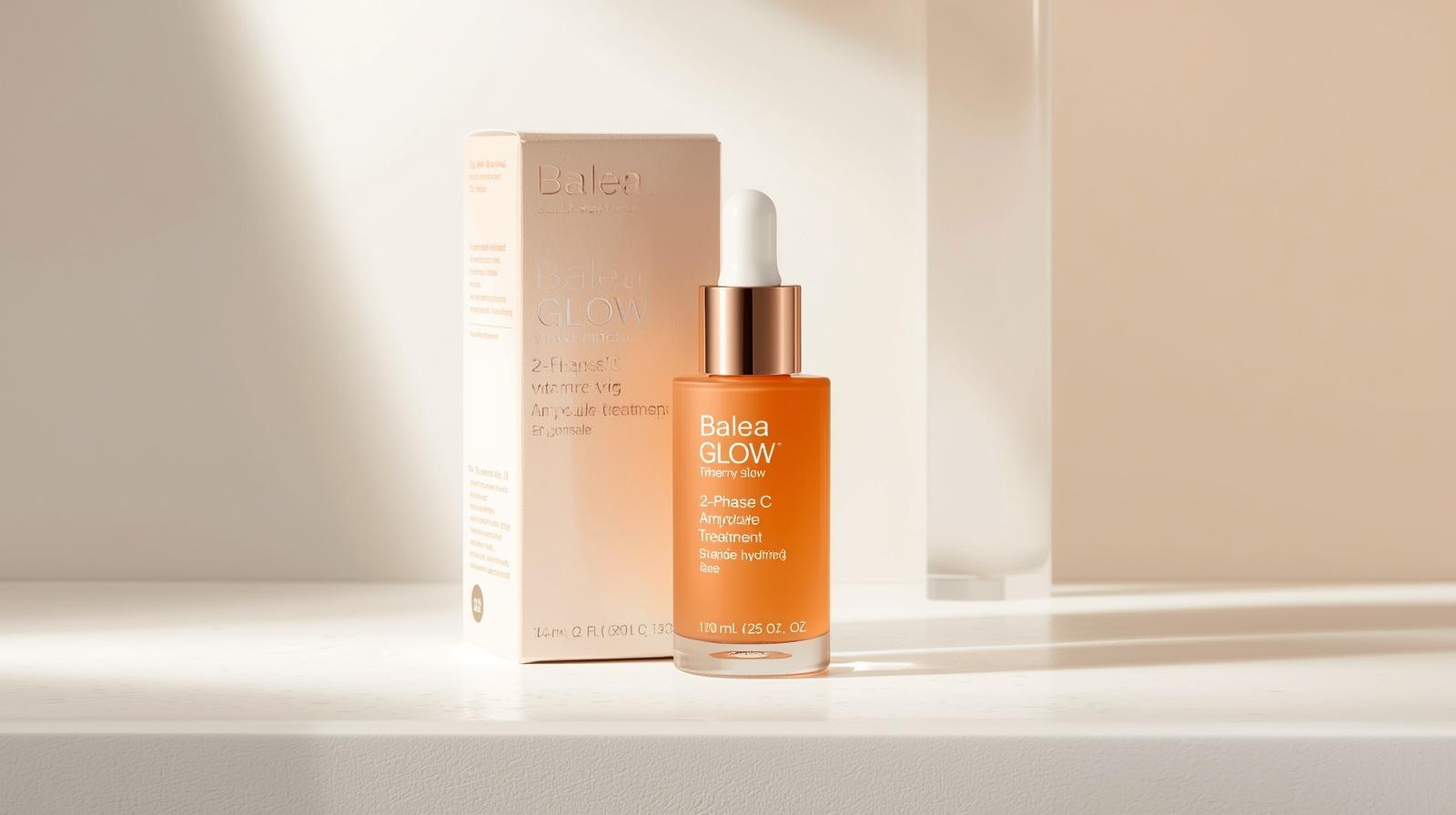Balea Glow 2-Phase Vitamin C Ampoule Treatment revitalizes dull skin and restores a radiant glow. The dual-phase formula combines 4% vitamin C with a rich lipid complex of almond oil and sunflower oil (23% and 6.9%, respectively) to provide deep hydration and nourishment. Fine lines appear softened, and the skin looks refreshed and luminous.